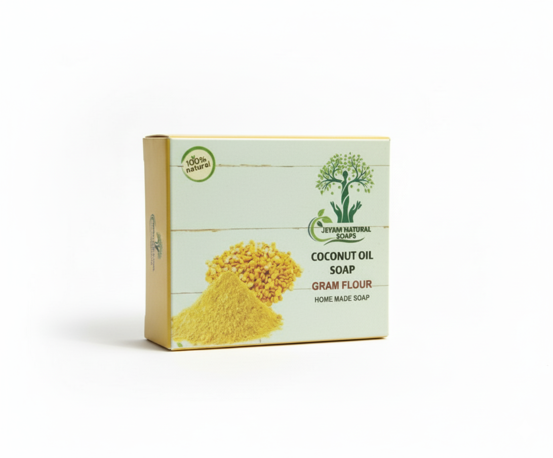 பாரம்பரியத்தின் சக்தியைக் கொண்டு உங்கள் சருமத்தை சுத்தம் செய்து பிரகாசமாக்குங்கள்! எங்கள் 100% இயற்கை, வீட்டிலேயே தயாரிக்கப்பட்ட சோப்பு, ஈரப்பதமூட்டும் தேங்காய் எண்ணெயுடன் மெல்லிய கடலை மாவை (Besan) கலக்கிறது. கடலை மாவு ஒரு காலத்தால் நிரூபிக்கப்பட்ட இயற்கையான சுத்தப்படுத்தியாகும். இது அதிகப்படியான எண்ணெய், அழுக்கு மற்றும் அசுத்தங்களை மெதுவாக நீக்கி, சருமத்தை பிரகாசமாக்க உதவுகிறது. மென்மையாகவும், நெகிழ்வாகவும், இயற்கையாகவே ஒளிரும் சருமத்திற்காக இந்த சோப்பை தினமும் பயன்படுத்துங்கள்.