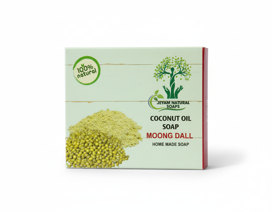 எங்கள் 100% இயற்கை, வீட்டிலேயே தயாரிக்கப்பட்ட சோப்புடன் பழங்கால அழகு ரகசியத்தின் பாரம்பரிய நன்மையை அனுபவியுங்கள். இந்தச் சிறப்பு சோப்பு, ஊட்டமளிக்கும் தேங்காய் எண்ணெயுடன் மெல்லியதாக அரைக்கப்பட்ட பாசிப்பயறு (Moong Dall) மாவை இணைக்கிறது. பாசிப்பயறு ஒரு மென்மையான, இயற்கையான சுத்தப்படுத்தியாக செயல்பட்டு, துளைகளை ஆழமாக சுத்தம் செய்கிறது, சருமத்தை பிரகாசமாக்குகிறது, மேலும் மென்மையான அமைப்பைக் கொடுக்க உதவுகிறது. இயற்கையாகவே ஒளிரும் மற்றும் ஆரோக்கியமான சருமத்திற்கான சரியான தினசரி குளியல் இது.